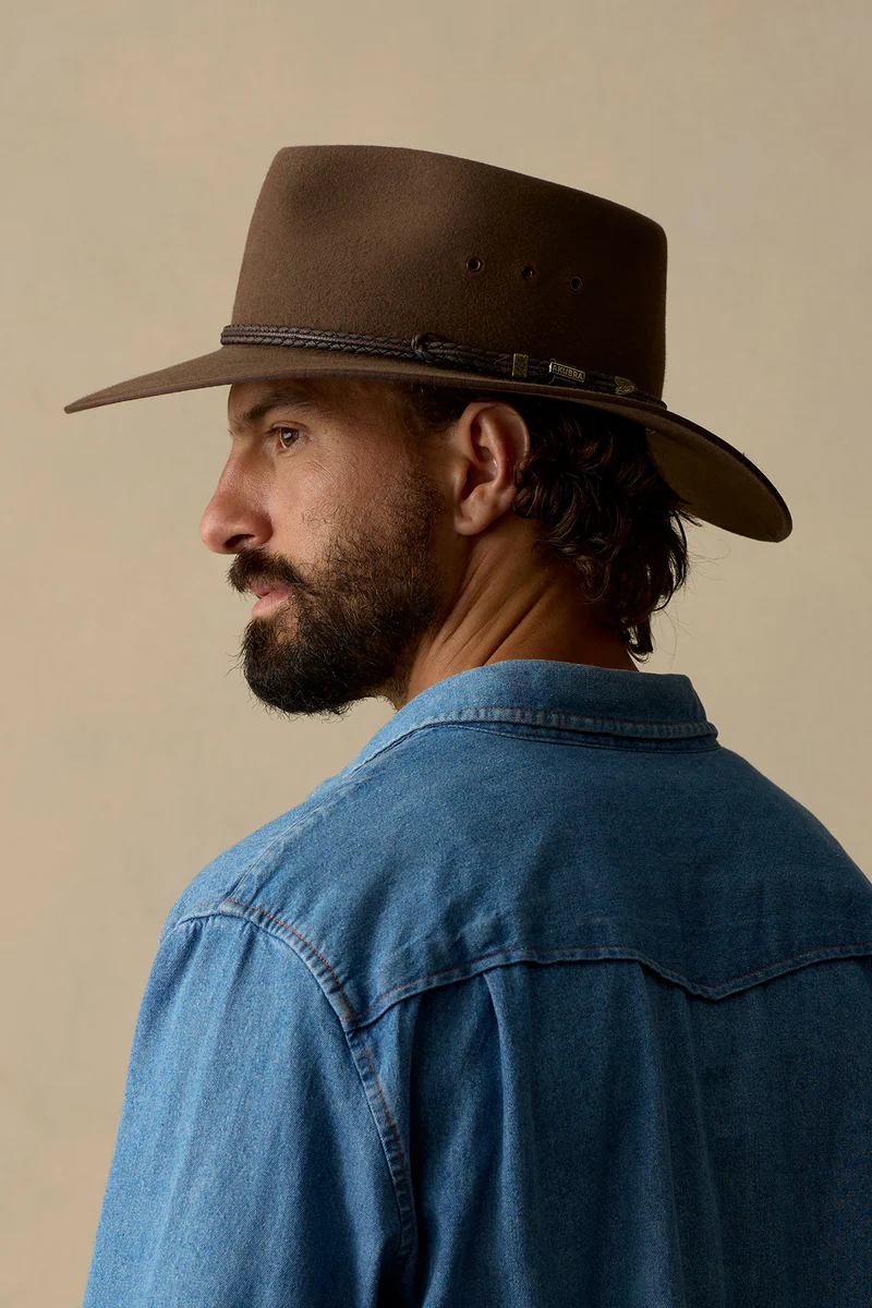 Where tradition meets resilience. The Akubra Cattleman is crafted for those who rise with the sun and never shy away from a hard day's work. Durable, stylish, and undeniably iconic. This hat is a symbol of rugged sophistication—a trusted companion for farmers, stockmen, and outdoor adventurers. Built to withstand the elements without compromising on style or functionality, the Cattleman has earned its place as a staple since 1991 for those who embrace a life on the land.