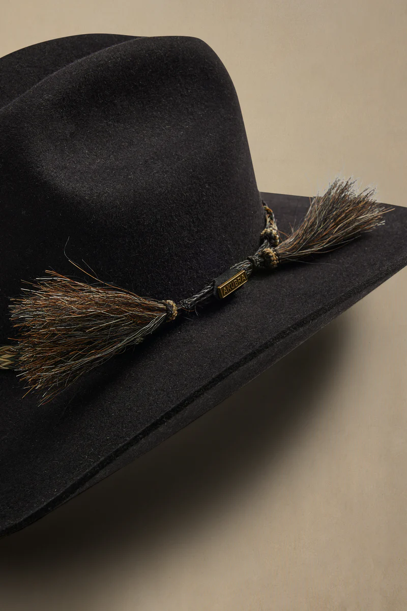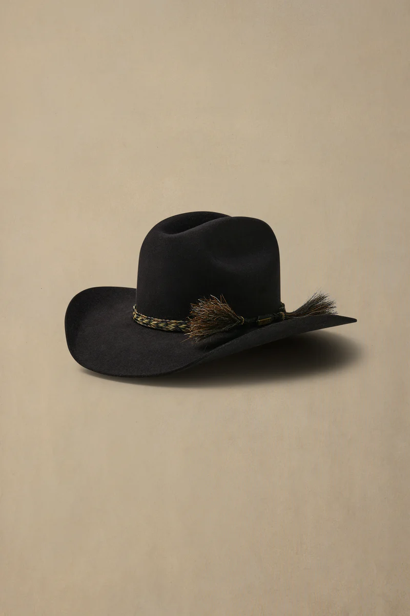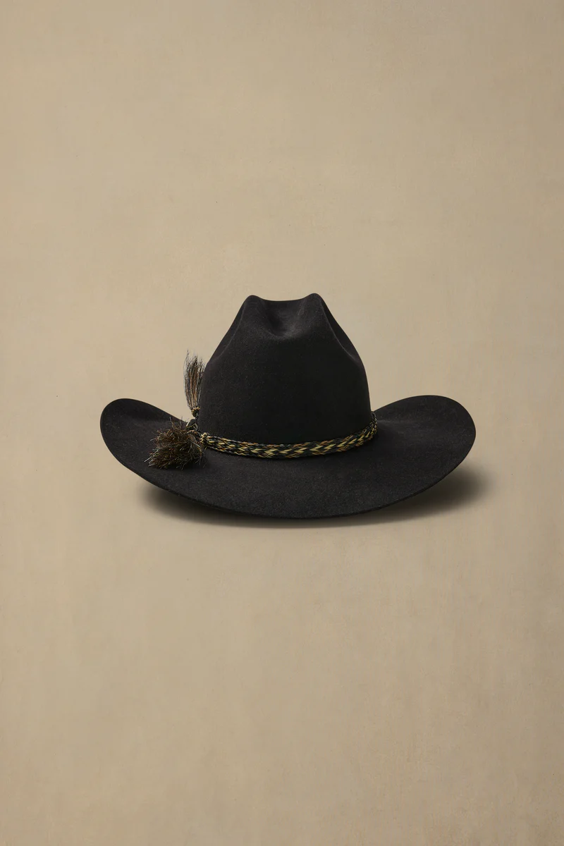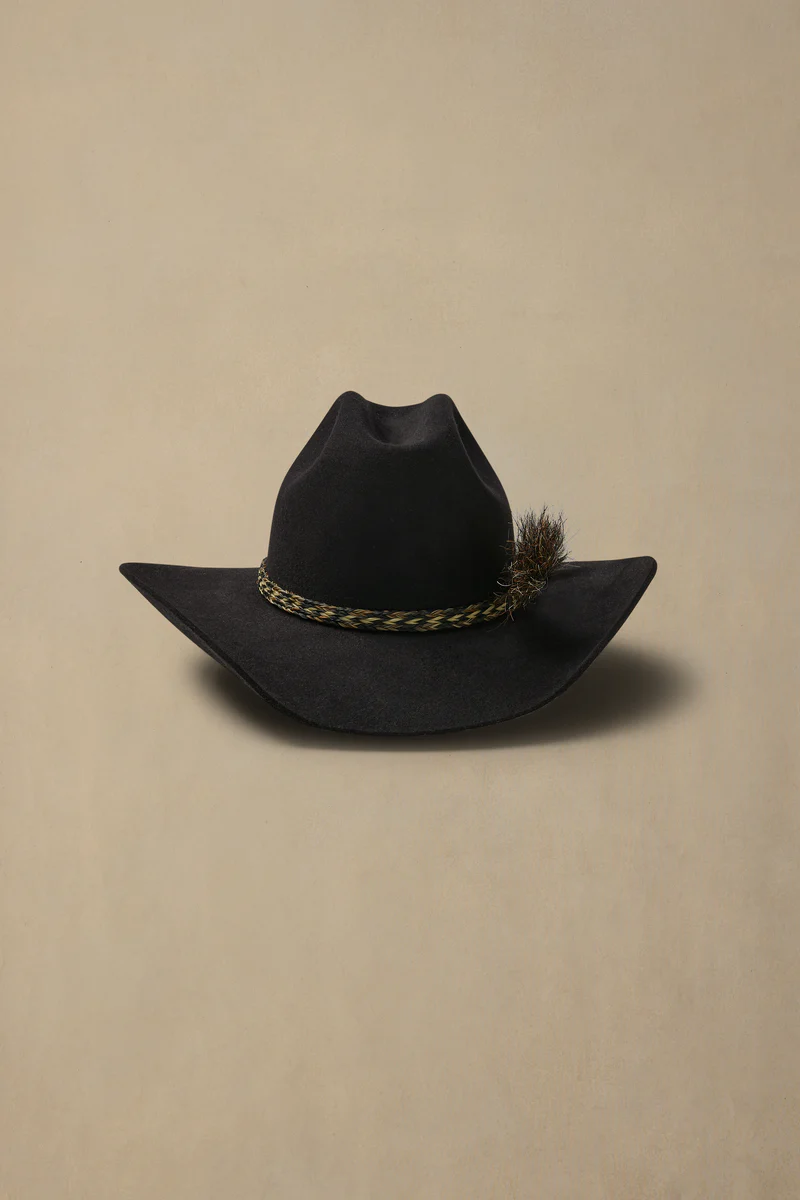 Features:- 98mm brim width- 135mm crown height- Cattleman crown shape- Satin lining- Leather inner sweatband- Braided double horse hair tail band with brass pin- Cut edge