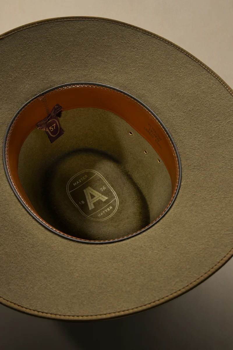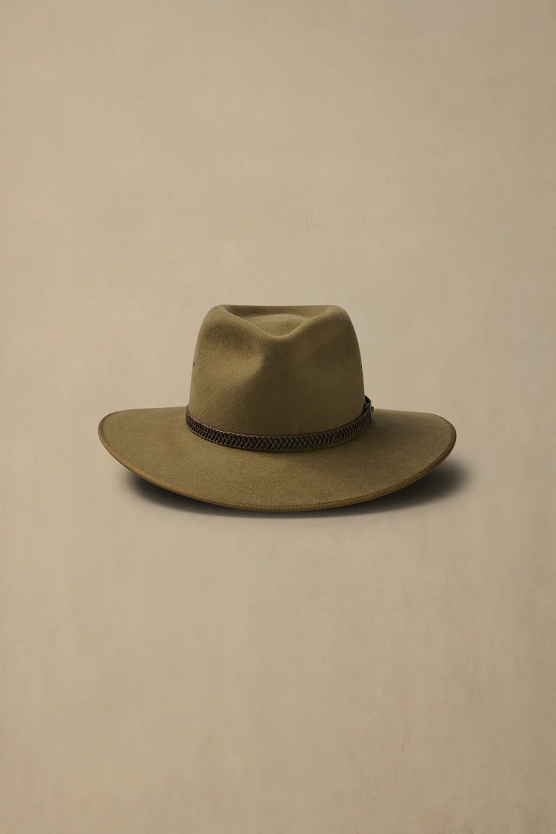 Features:- 83mm brim width- 115 crown height- Pinched teardrop shaped crown- Unlined- Leather inner sweatband- Leather with brass pin- Eyelets for ventilation-Bound edgeSize Range: 53 - 64Note: Colour of hat may vary slightly from the picture.