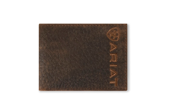 Ariat Men's Wallet Bi Fold Rodeo Bullhide Ariat Emblem Brown A3554502