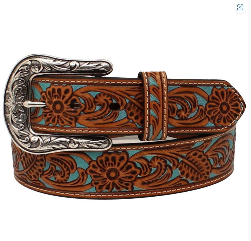 Ariat Women’s Belt Turquoise Floral Underlay 1-1/2″ Tan A1534108