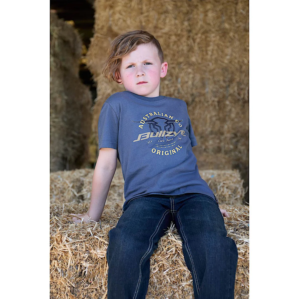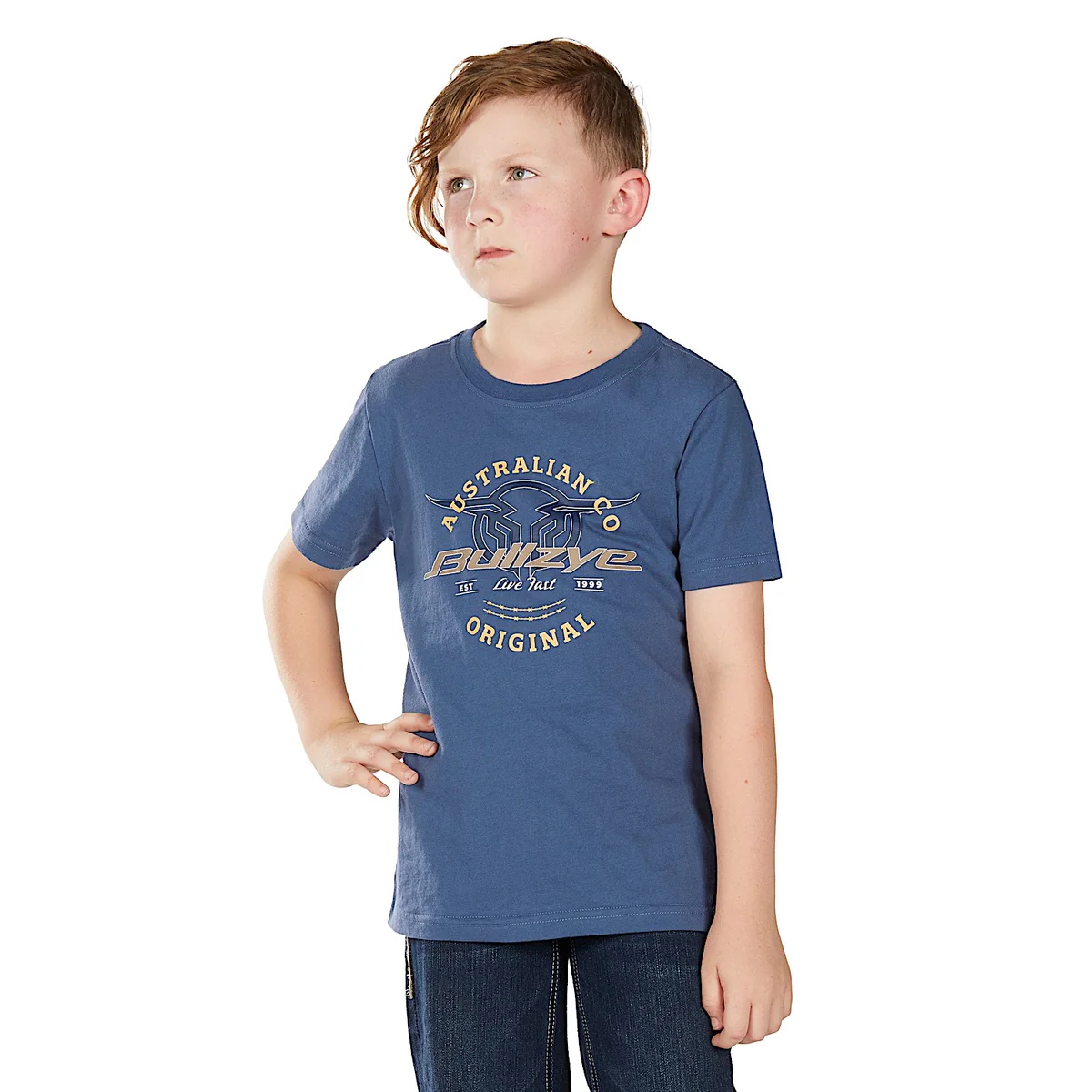 Bullzye Boy's T Shirt 'Live Fast' Short Sleeve Blue Steel B6W3503506