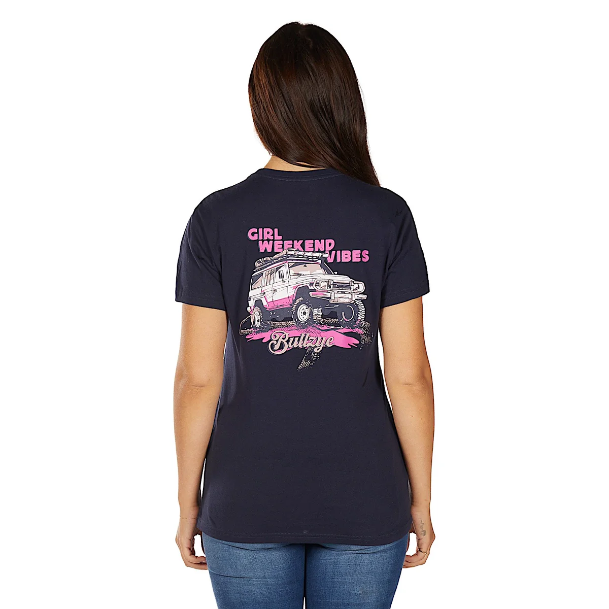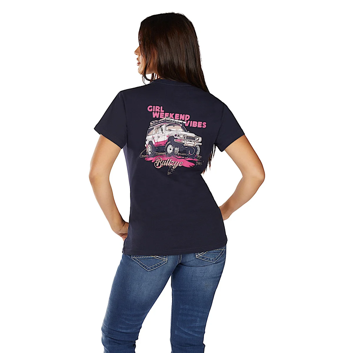Bullzye Women's T Shirt 'Vibes' Short Sleeve Navy B6W2503527