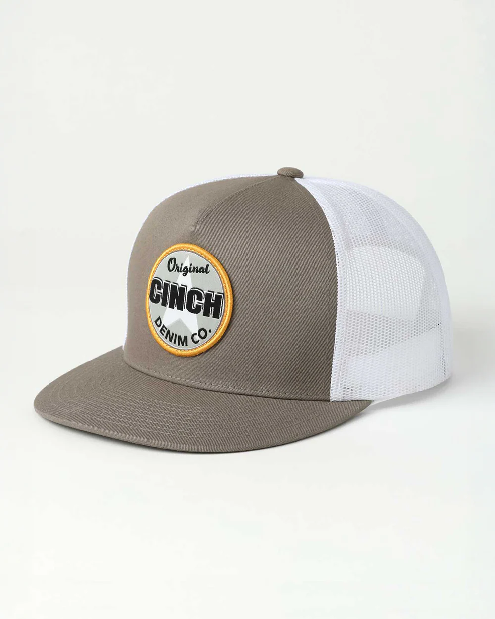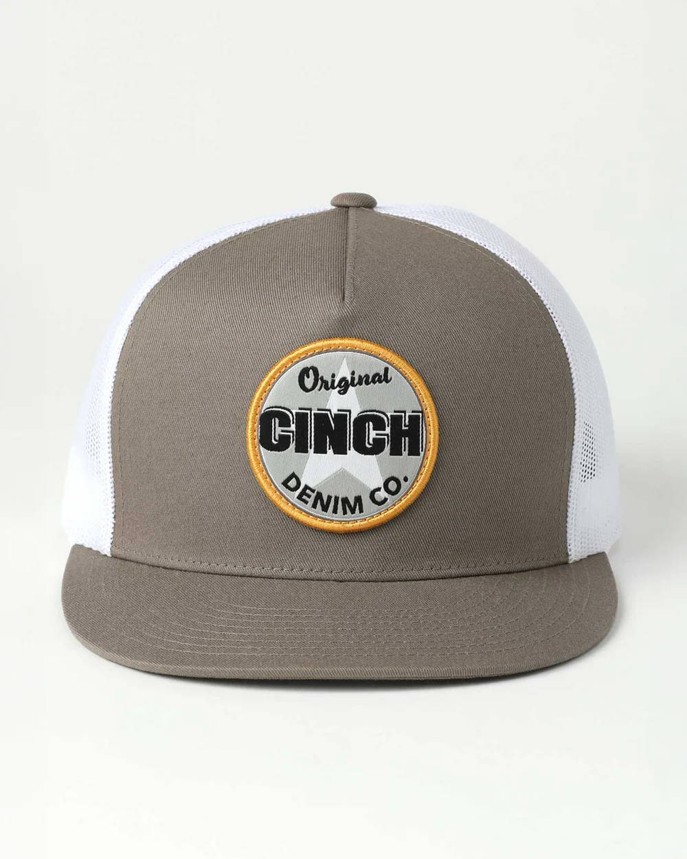 - Complete your look with this tan Flexfit trucker cap featuring a CINCH woven logo patch for bold, authentic style. Built with streamlined 5-panel construction and a high-profile design, this cap delivers a modern, structured fit. Finished with a back snap closure, it’s a versatile accessory made for everyday wear.