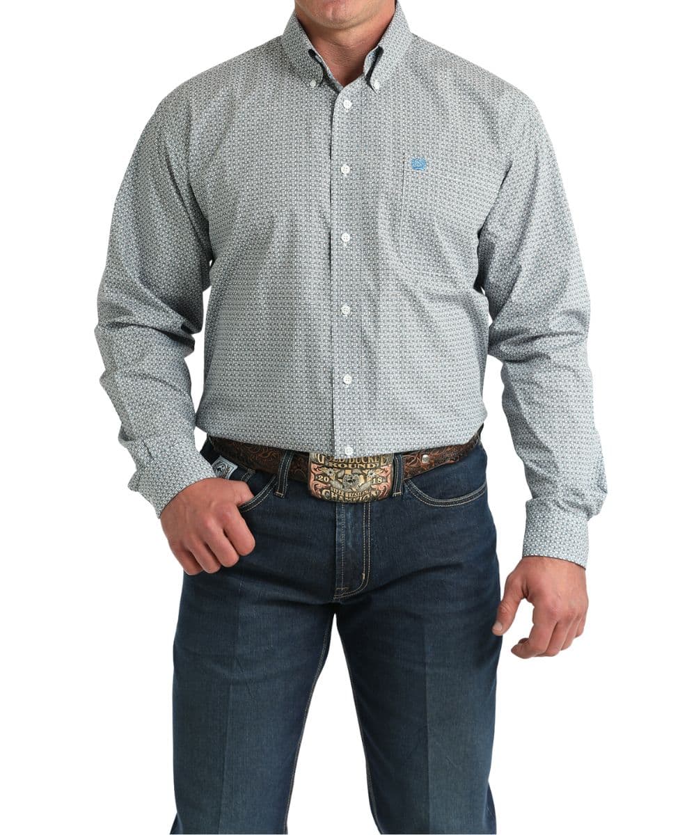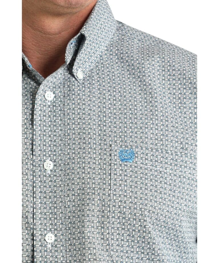 Cinch Men's Shirt 'Classic Fit' Geometric Print White MTW1105999 WHT