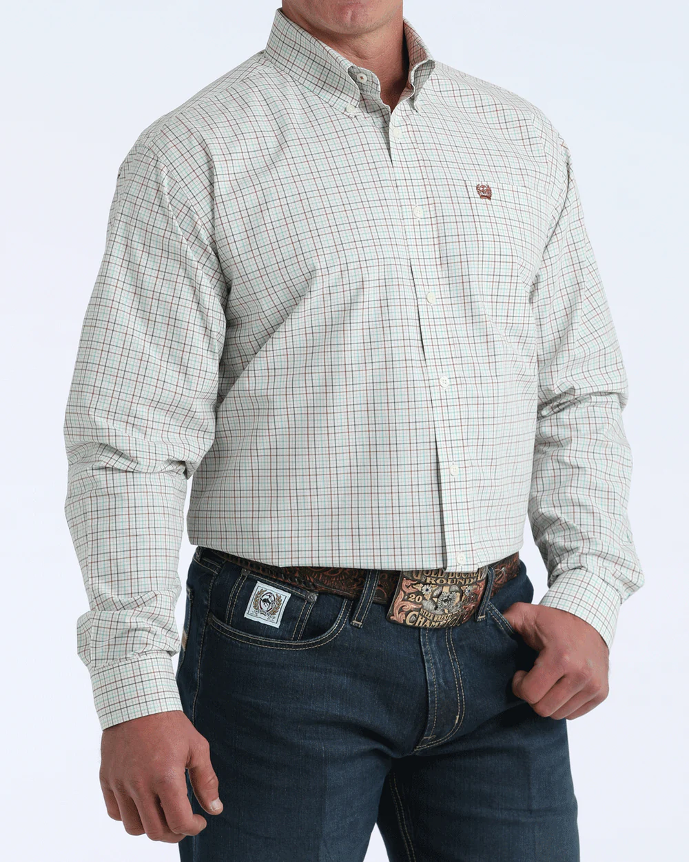 Crafted for timeless wear, this classic cream plaid cotton plain weave engineered by CINCH features an open left front pocket, an embroidered logo, and traditional cream buttons. It’s the sharp, versatile shirt you’ll want for everyday comfort and unmistakable style