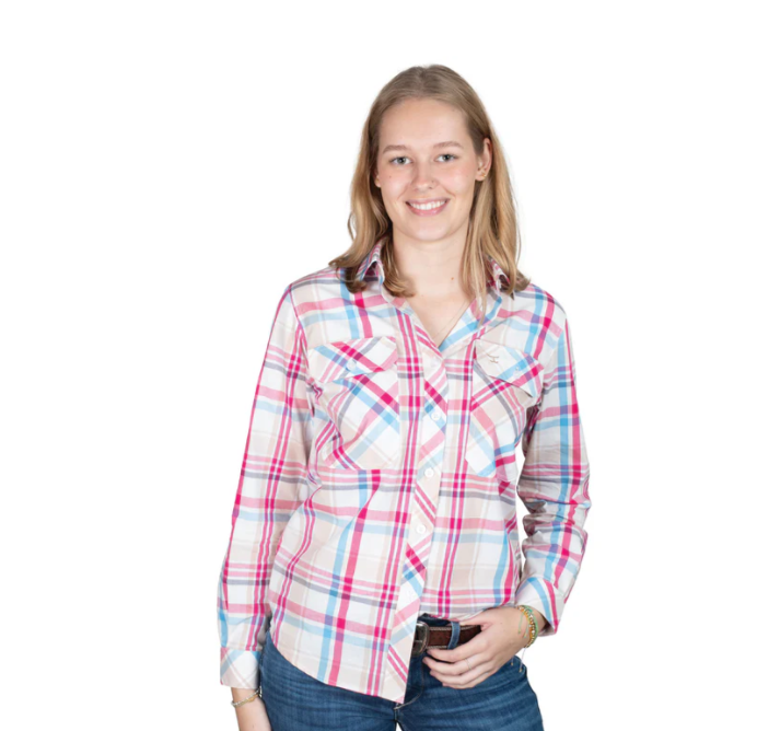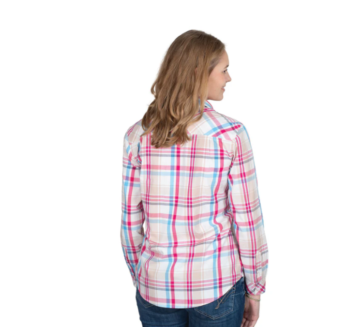 Just Country Women's Work Shirt Abbey Full Button Pink/Blue/Tan Plaid WWLS2563