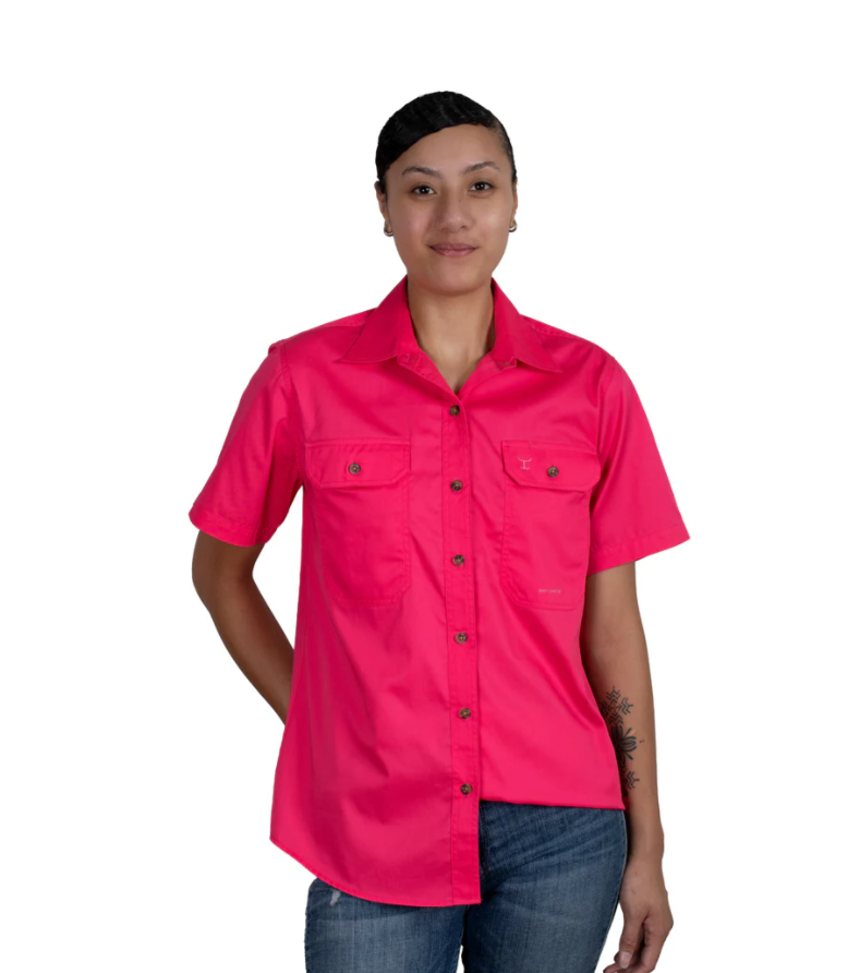 Just Country Women's Work Shirt 'Maggie' Short Sleeve Full Button Hot Pink 50504HPK