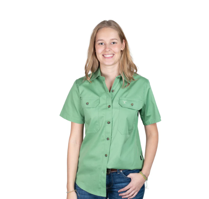 Just Country Women's Work Shirt 'Maggie' Short Sleeve Full Button Jade 50504JAD