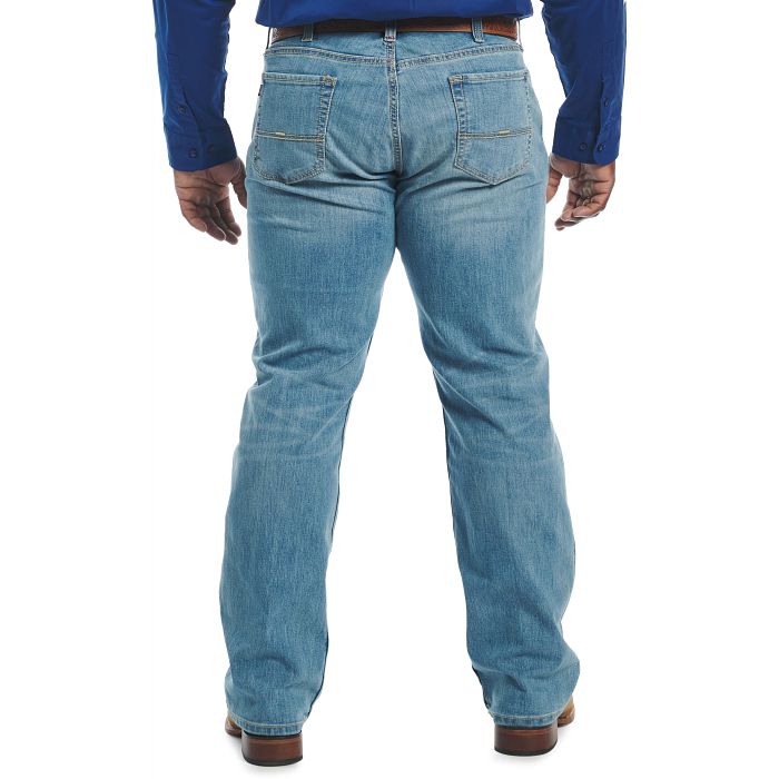 Handsome, durable jeans with a relaxed boot cut fit.