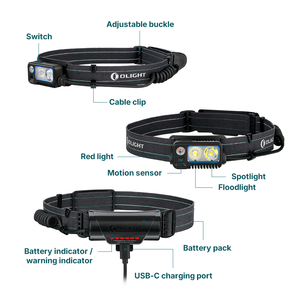 • 3 Light Sources: floodlight, combined floodlight and spotlight, and red light for multi-scene applications. Large switch button on headlamp top, easy to change light modes and brightness you like.