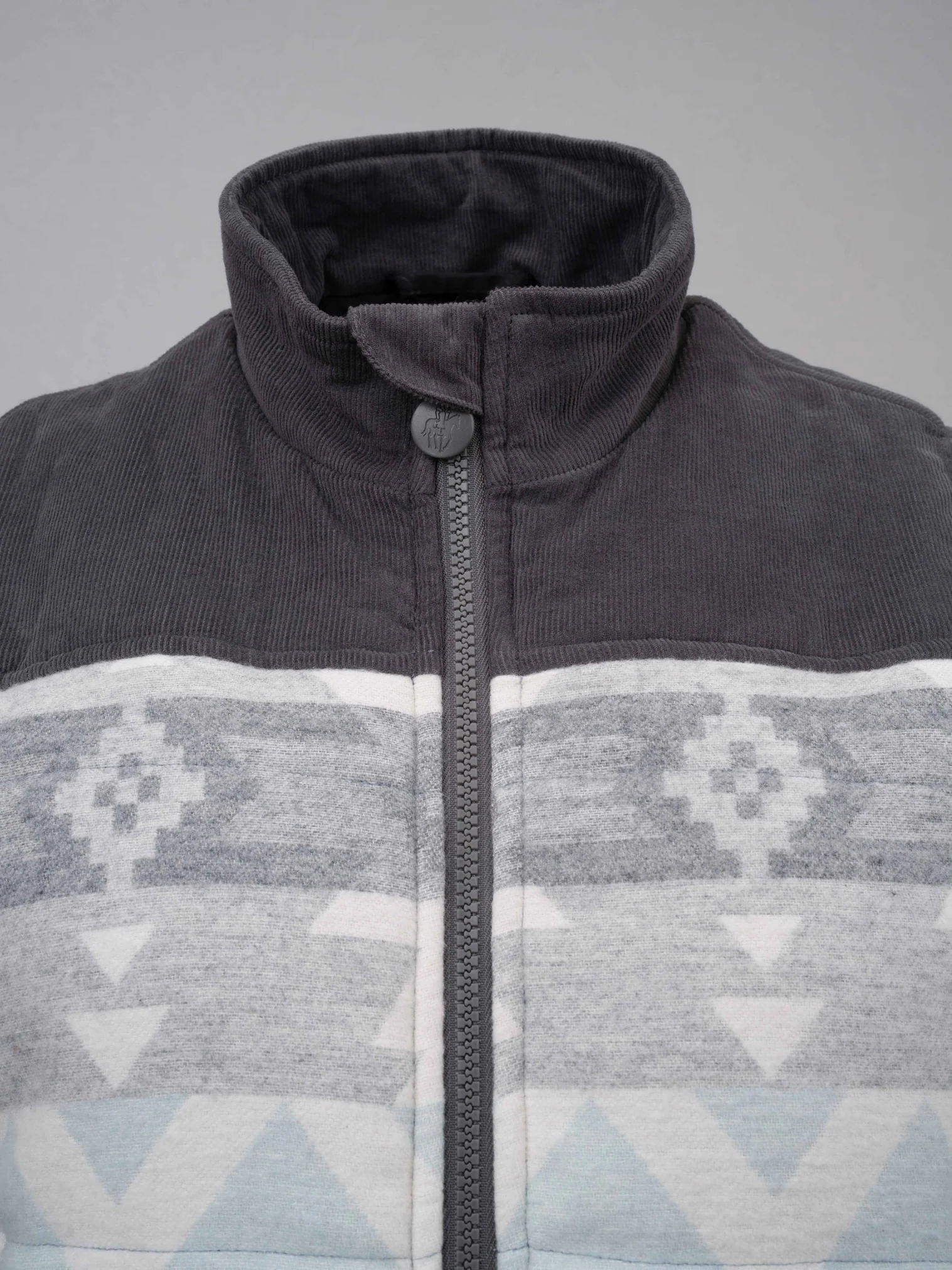 The Millie Vest brings cozy warmth and western flair with its bold blue-and-white Aztec pattern. Made with a 100% cotton shell and insulated with soft polyester fill, it’s the perfect layer for crisp days on the ranch, at the barn, or out on the trail.