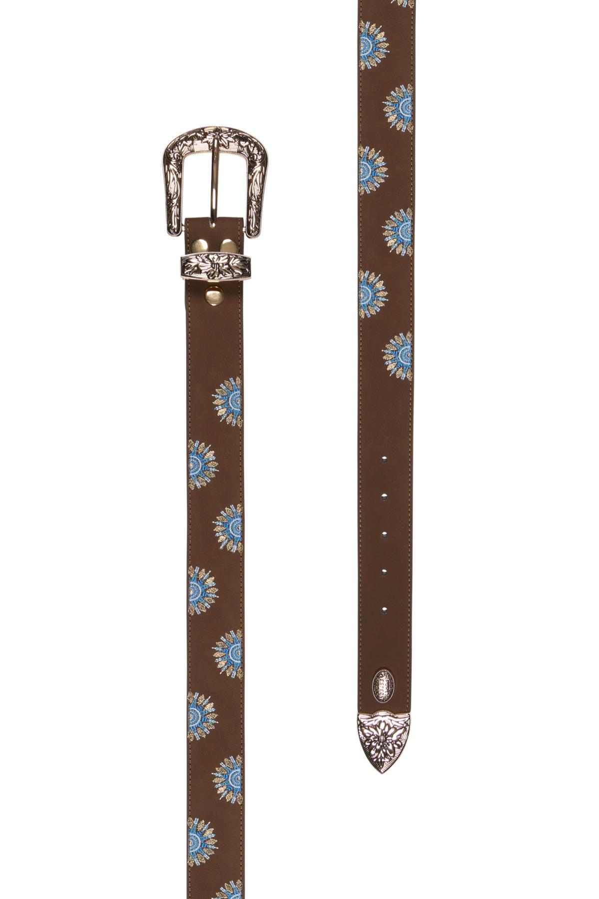 Embroidery design with metallic thread, removable buckle, Pure Western concho, antique bronze hardware