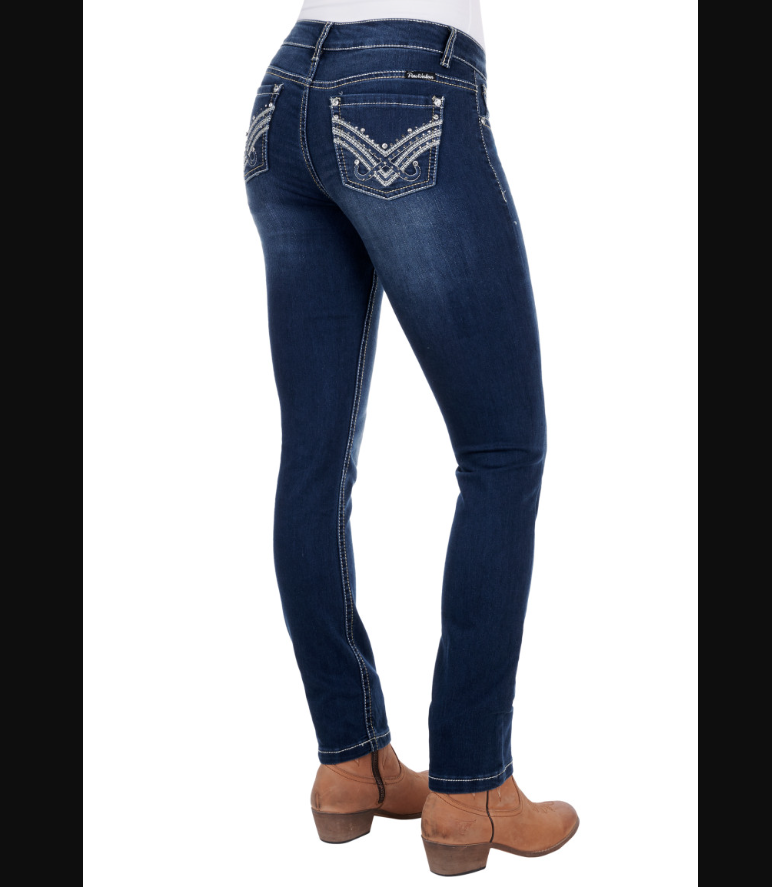 Our Pure Western Womens Skinny Jeans have stretch for comfort and feature back pockets with stylish topstitch detail.