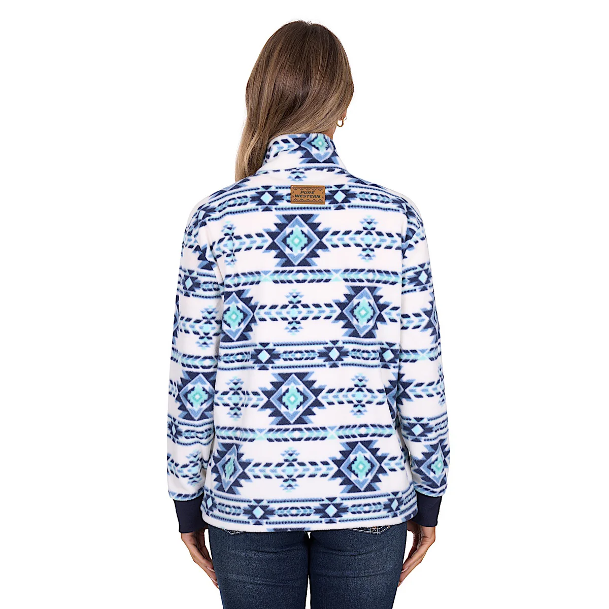 - Pure Western mock leather label on hem