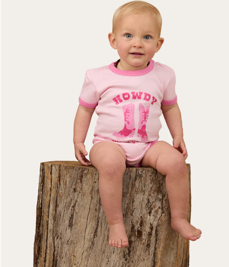 Ringers Western Babies Romper 'Howdy Cowgirl' Ballet Pink