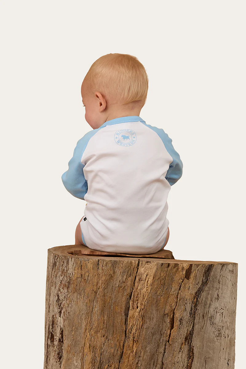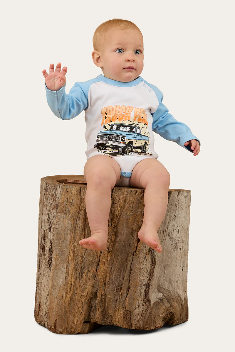 Ringers Western Babies Romper ‘Trucker Kid’ Long Sleeve White/Blue 525011RW-WHT/BLU