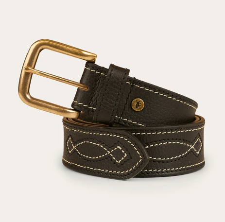 Introducing the Crossover Belt – a perfect blend of timeless Western style and refined elegance. Expertly crafted from premium genuine leather, this versatile belt features a distinctive Western crossover stitch pattern, adding classic texture and standout appeal. The look is elevated by an antique brass buckle, paired with a brass-toned Ringers Western stud, combining rugged charm with polished detail. Whether you're dressing for the office, a night out, or a weekend rodeo, the Crossover Belt brings classic Western flair and sophistication to any outfit.