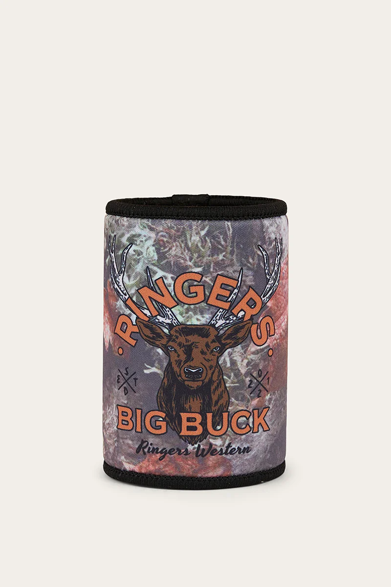 Crafted from premium neoprene and finished with reinforced zigzag stitching, this stubby cooler is made to go the distance—whether you’re at the pub, around the campfire, or out bush. Featuring an all-over Big Buck print and the iconic Ringers Western signature graphic, it delivers standout Western appeal while fitting all standard cans and bottles with ease.