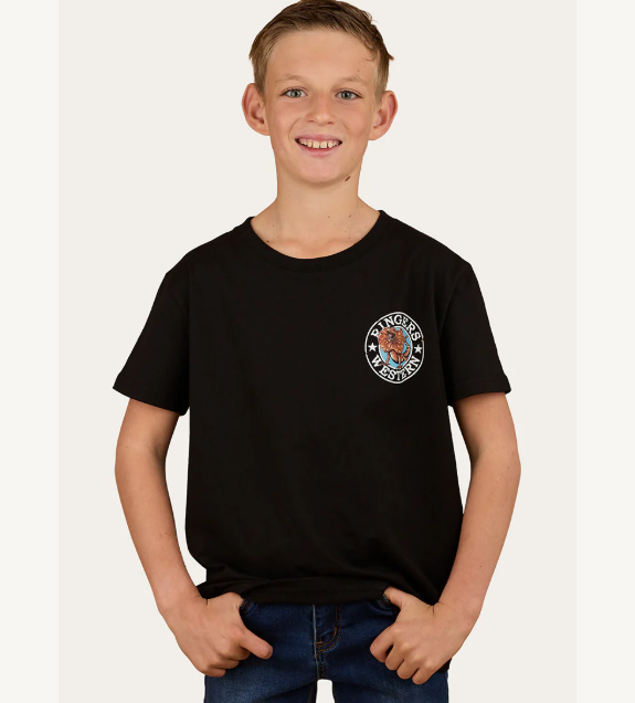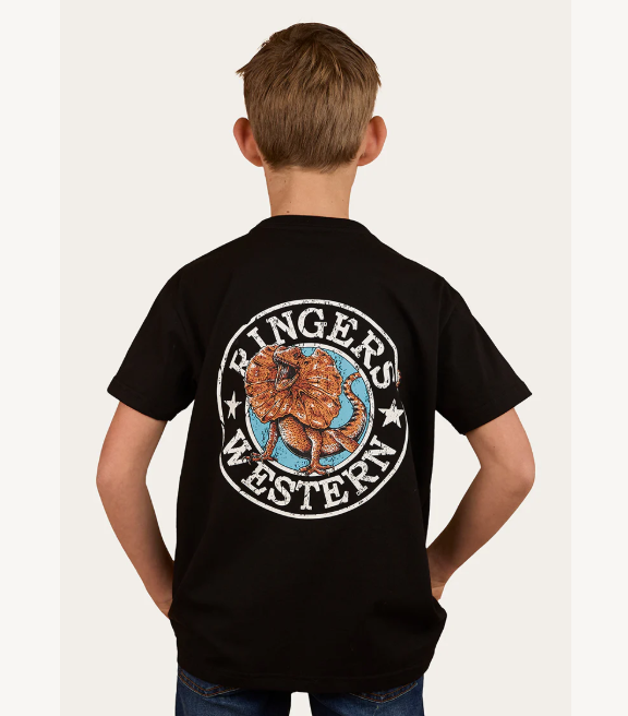 Featuring an iconic Frilly Neck Lizard graphic on the back, complemented by a small chest print - the Outta Towner is sure to be a favourite amongst young cowboys and cowgirls for seasons to come.
