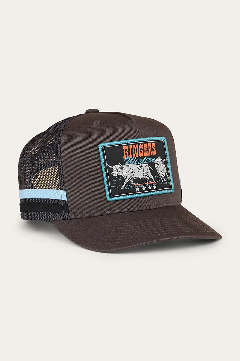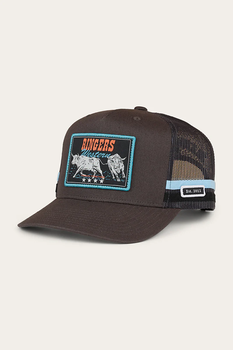 Signature Ringers Western details elevate the look — a woven front badge, contrasting twill side stripes, embroidery accents on the mesh, and a printed underbrim featuring cattle give a nod to life on the land. Finished with woven Ringers Western labels, this trucker cap perfectly balances Aussie style with everyday practicality.