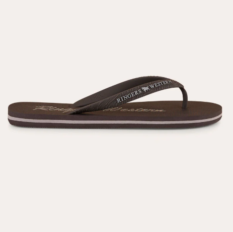 Sleek, lightweight and built for sun-soaked days, the Combi Thong is your go-to summer essential for comfort, durability and effortless style.Designed with a lightweight and shock-absorbing PE/EVA blend outsole, these thongs deliver superior flexibility and cushioning—perfect for long days out, sightseeing, or slipping on after a hard day on your feet. The durable TPU strap, featuring subtle Ringers Western branding, ensures a secure and comfortable fit that stays in place.The slimline design is complemented with a contrasting pinstripe within the multi layered sole. With a snug fit and contoured footbed for optimal support, the Combi Thongs keep you energised and on your toes from the beach to the bar.Built for everyday wear and summer adventures, the Ringers Western Combi Thong delivers comfort you can count on.