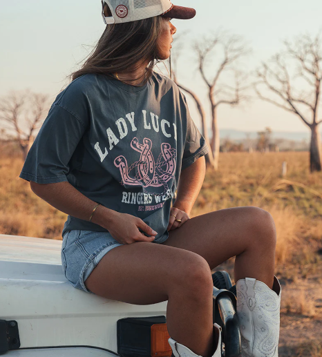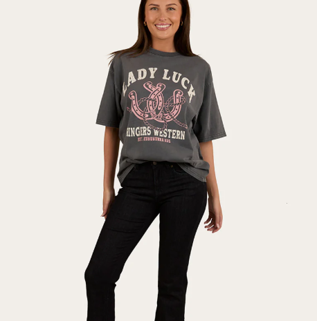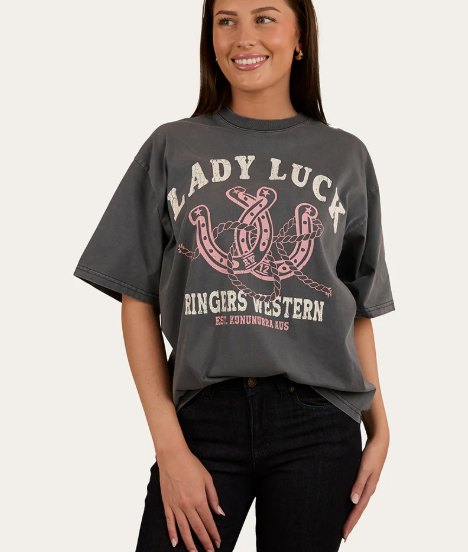 Ringers Western Women’s T-Shirt ‘Lady Luck’ Oversized Washed Black 224068RW-WBLK