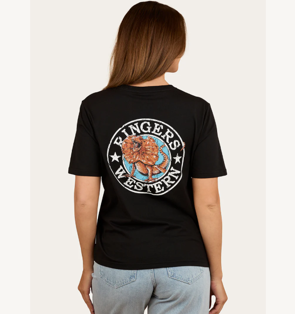 Pre-shrunk for shape retention wear after wear, this T-shirt pairs effortlessly with your favourite Ringers Western denim, delivering casual, cowgirl style with a taste of the Aussie outback.