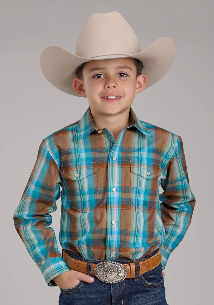 Roper Boys Shirt Amarillo Collection Orange Plaid 03-030-0278-3014 Orange