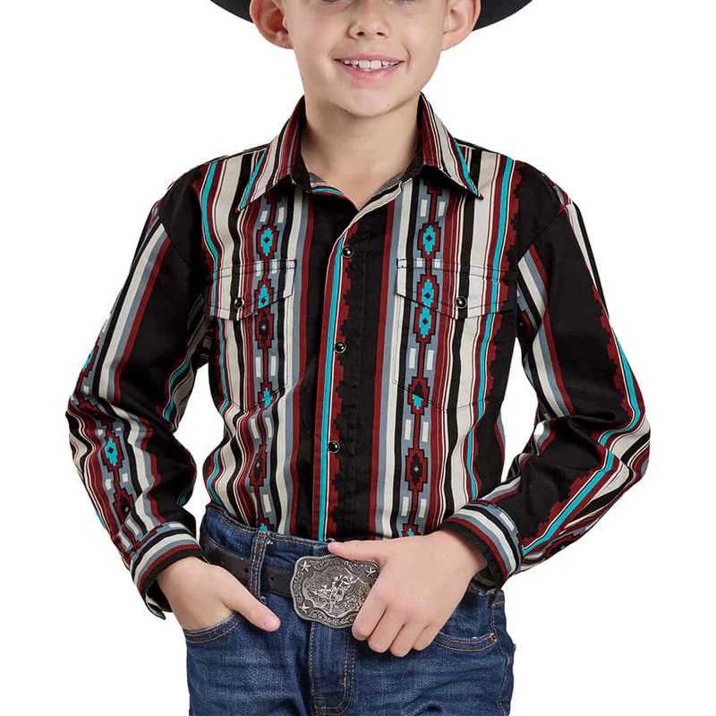 Roper Boy's Shirt 'Vintage Collection' Print Stripe Black 03-030-0485-0703 BL