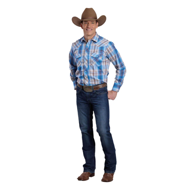 Roper Men's Shirt 'Karman 55/45 Collection' Long Sleeve Plaid Blue 01-001-0101-2020 MU