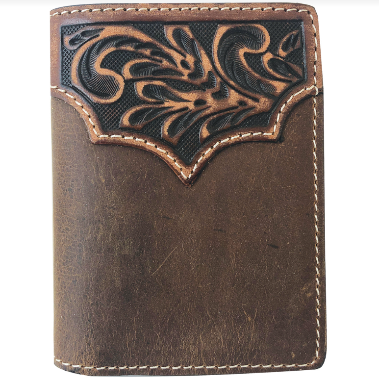 Roper Men's Wallet Tri-Fold Tooled Yoke Tan 8145100