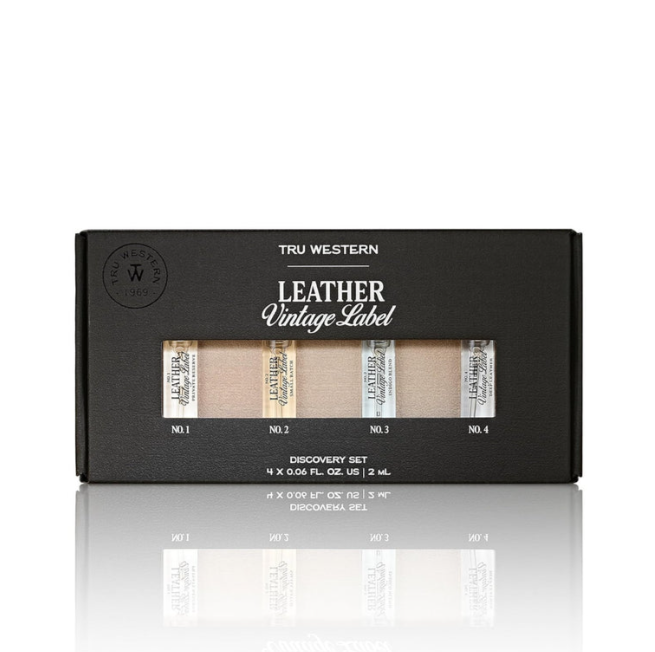 This discovery set from Tru Western makes the perfect gift, sampling the finest colognes from the Leather Vintage Label Collection. Includes 4 x 2ml bottles.