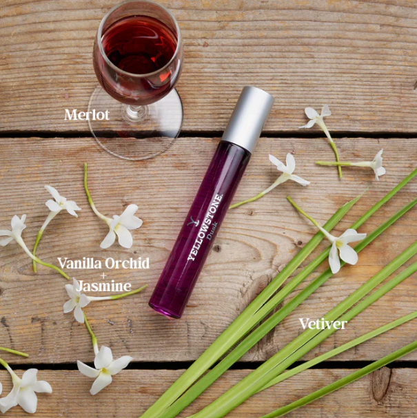 - Yellowstone Dusk: Inspired by the unforgettable moment Beth and Rip share on the roof of Dutton Ranch, Dusk envelops you in the comforting warmth of Night Blooming Jasmine, while Merlot and Vetiver add a rich, grounding depth, making you feel as though you're right where you belong. Notes Of: Night Blooming Jasmine, Vanilla Orchid, Merlot, Sweet Herbs, Vetiver