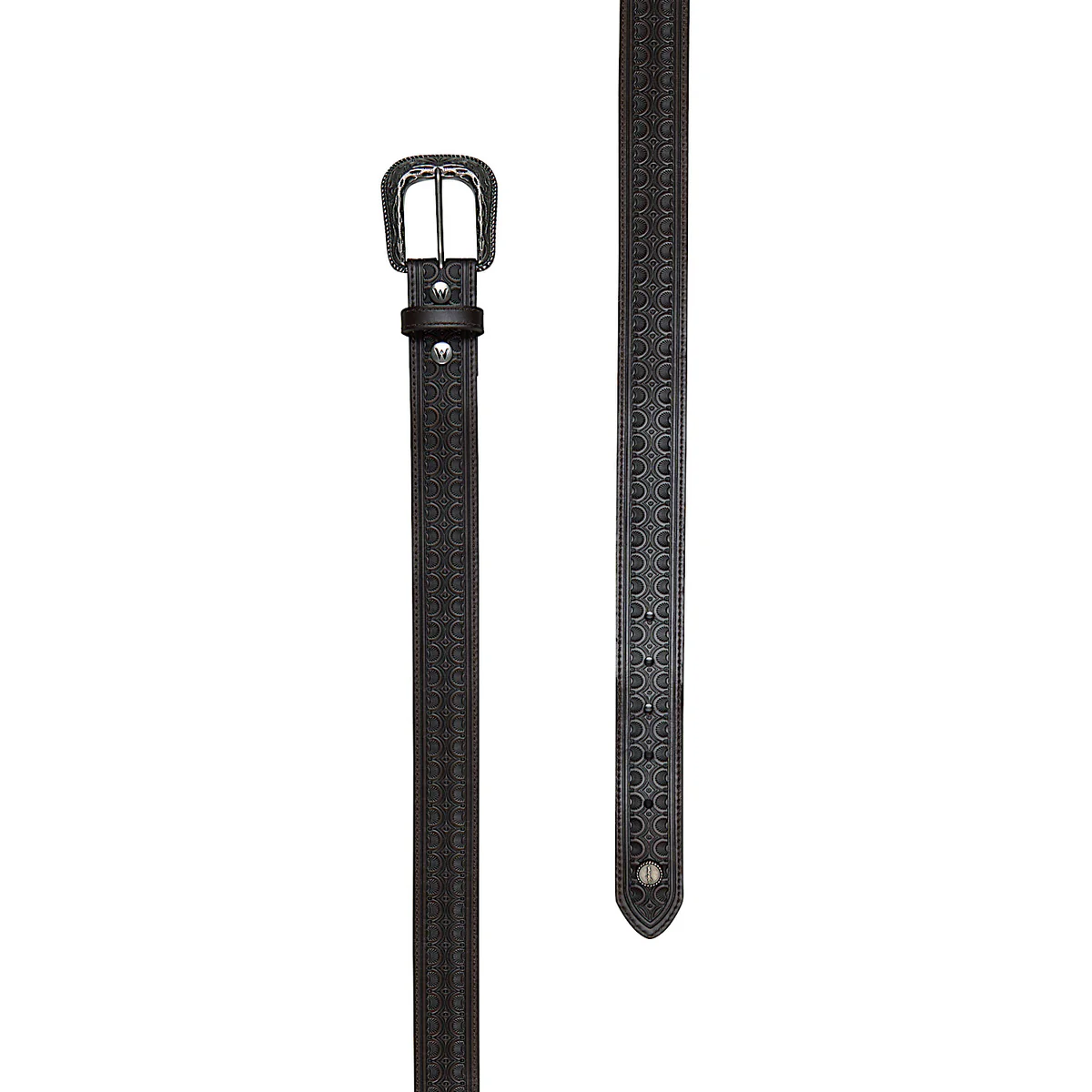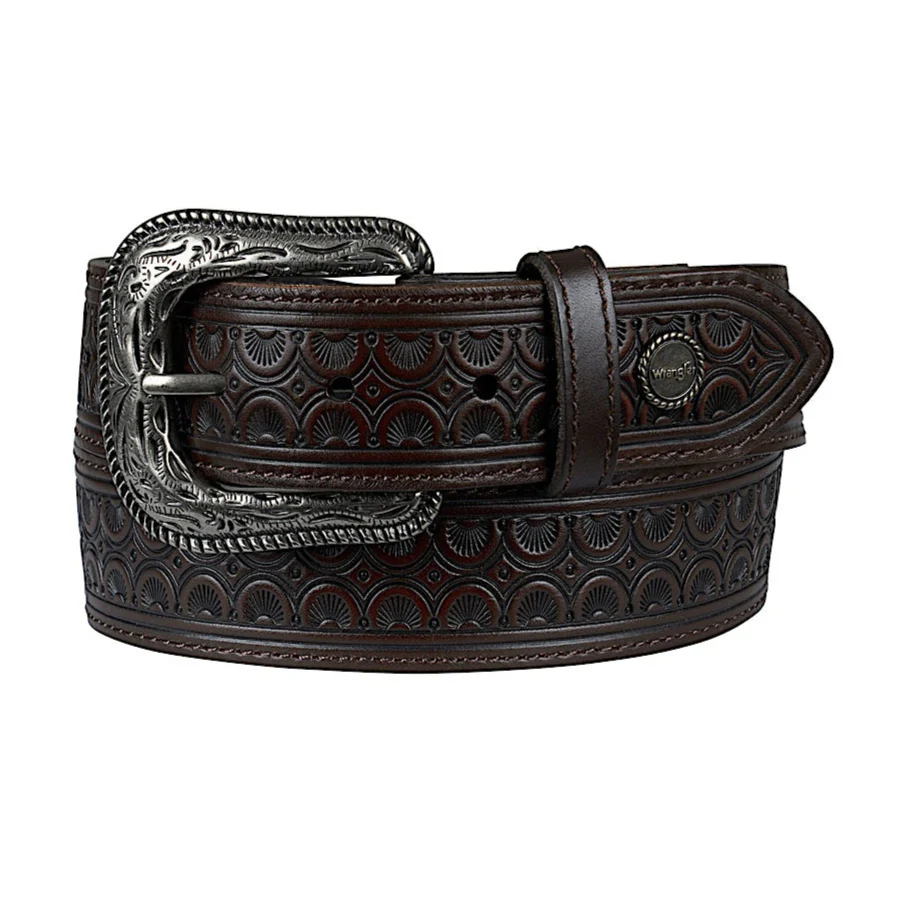 Tooled strapRemovable buckleWrangler® iconic conchoAntique silver hardware