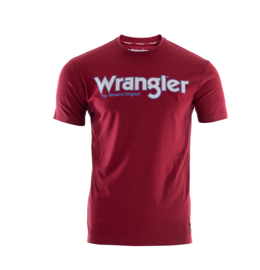 Large front feature Wrangler iconic logo print, Wrangler iconic logo back neck print, rib neck band, Wrangler iconic logo back neck binding, Wrangler iconic logo hem label