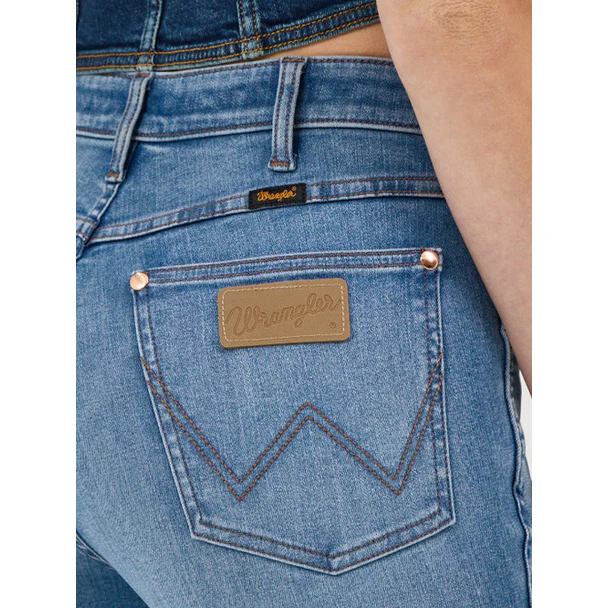 Wrangler Women’s Jeans ‘Lainey Wilson’ High Rise Boot Hugger Blue Wash 112368251