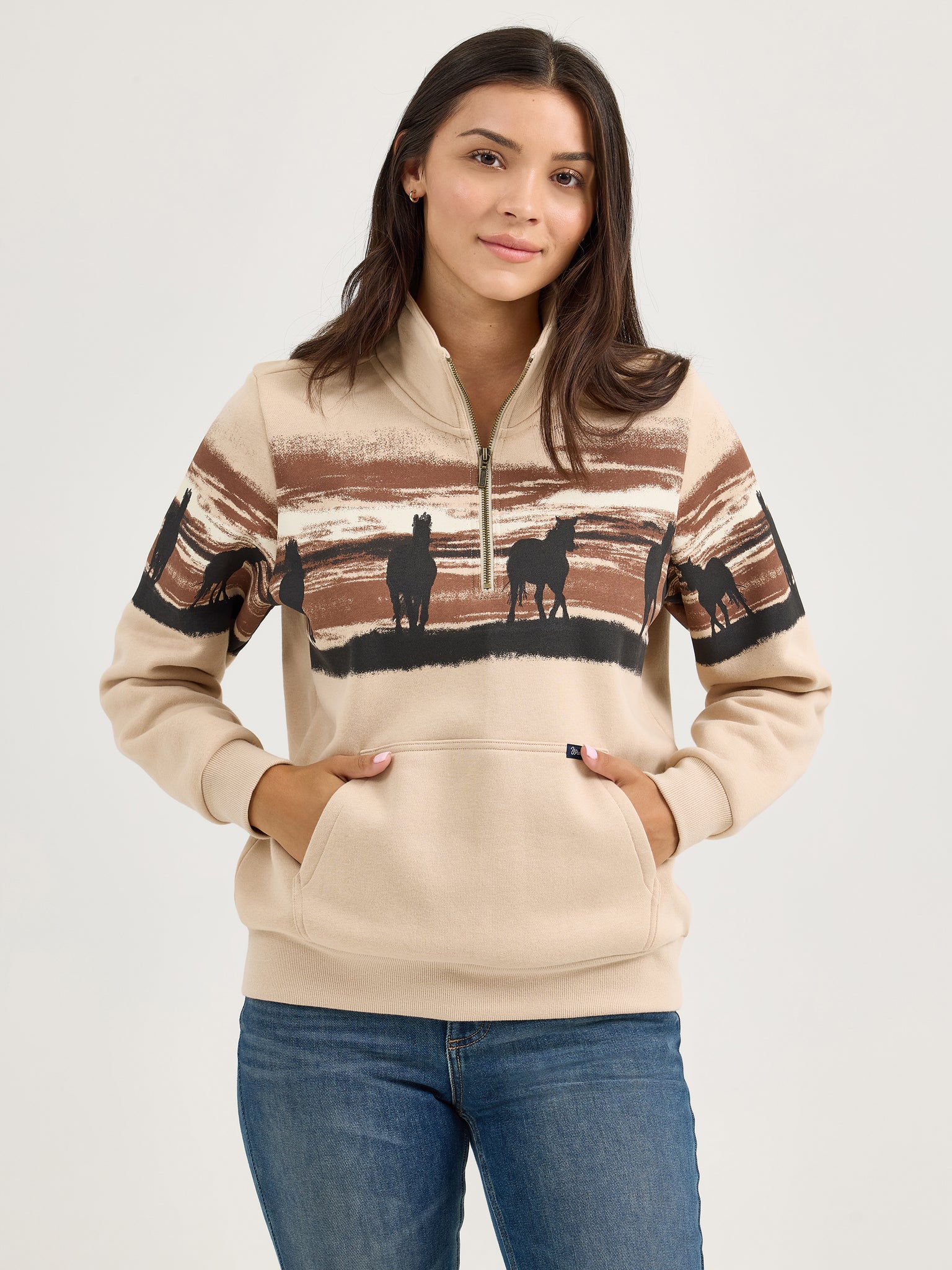 Wrangler Women's Pullover 'Vintage' 1/4 Zip Long Sleeve Scenic Horse Print Cream 112367394